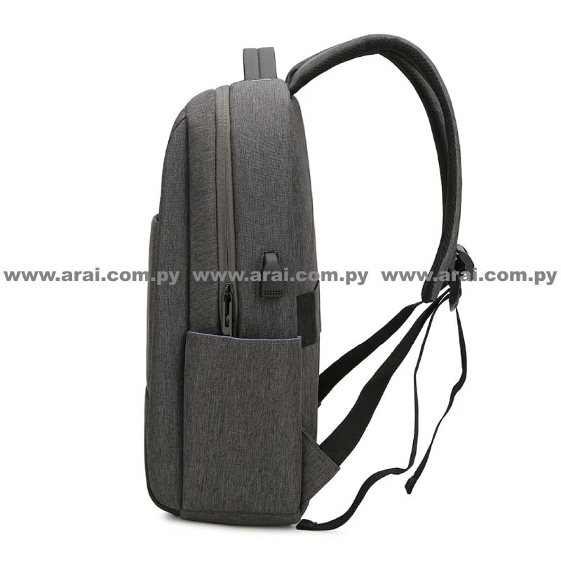 Mochila Porta notebook con bolsillo frontal grande al frente y en los laterales.