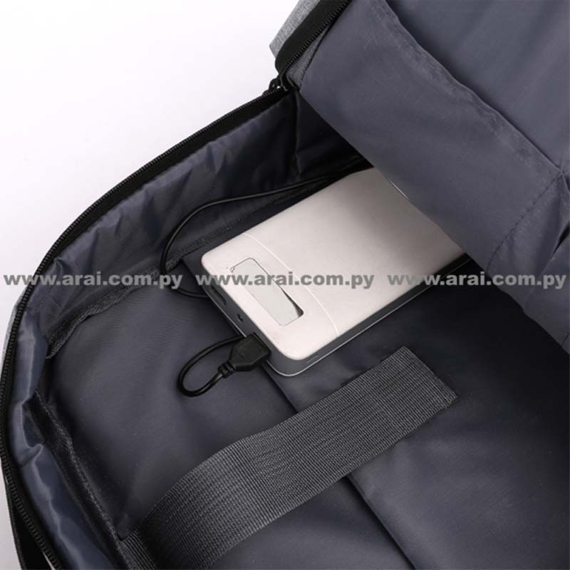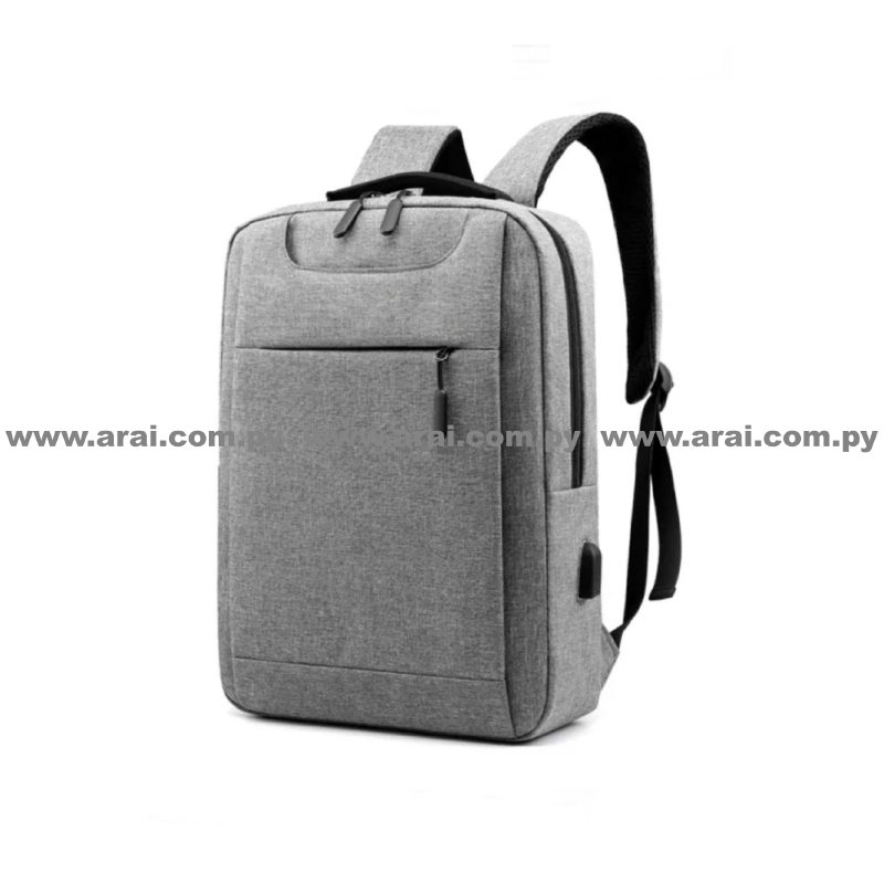 Mochila Porta notebook con bolsillo frontal grande al frente y secundario con cierre.